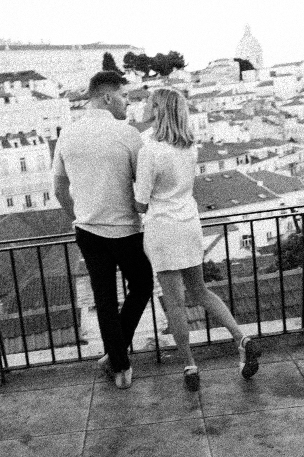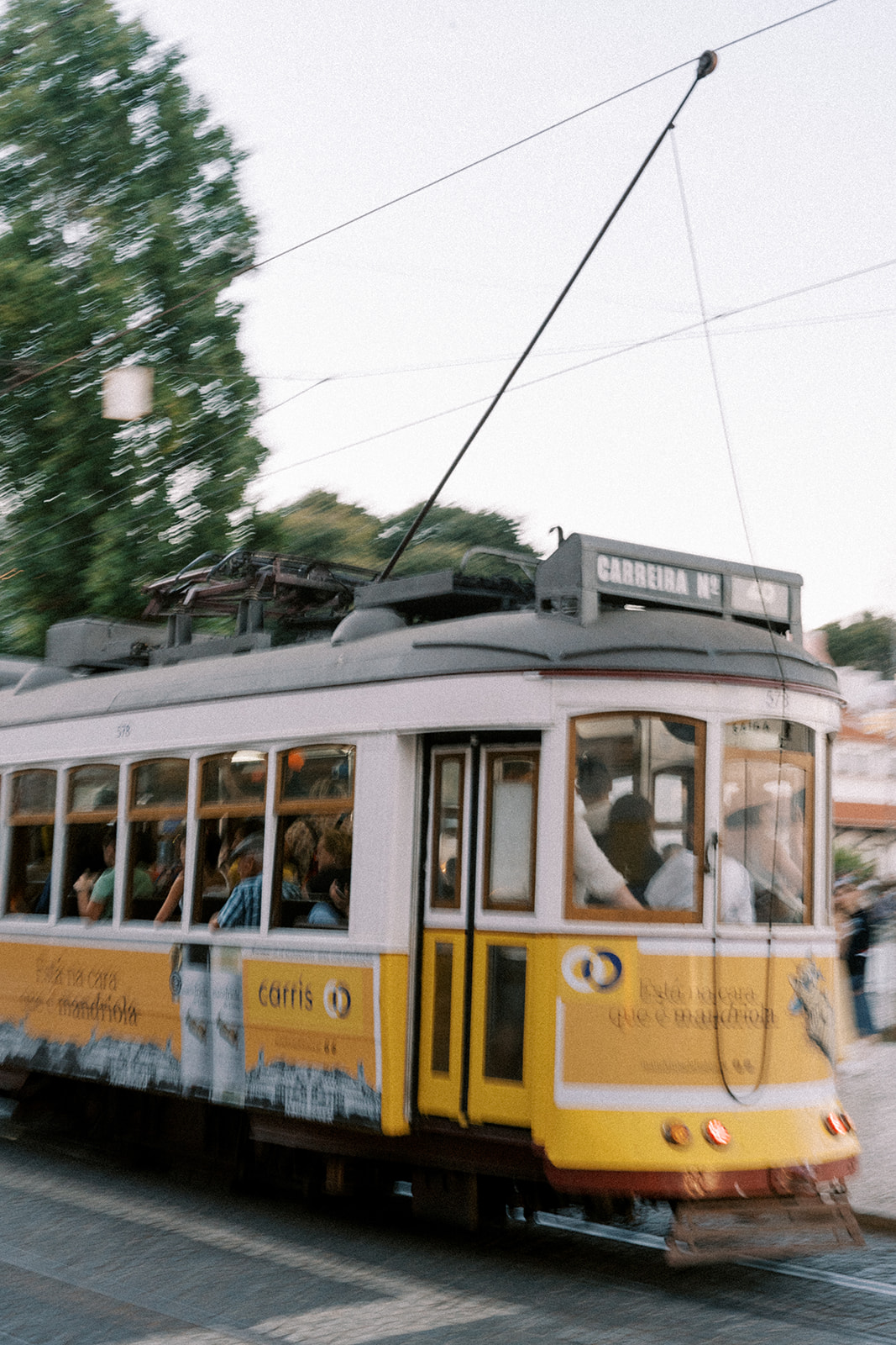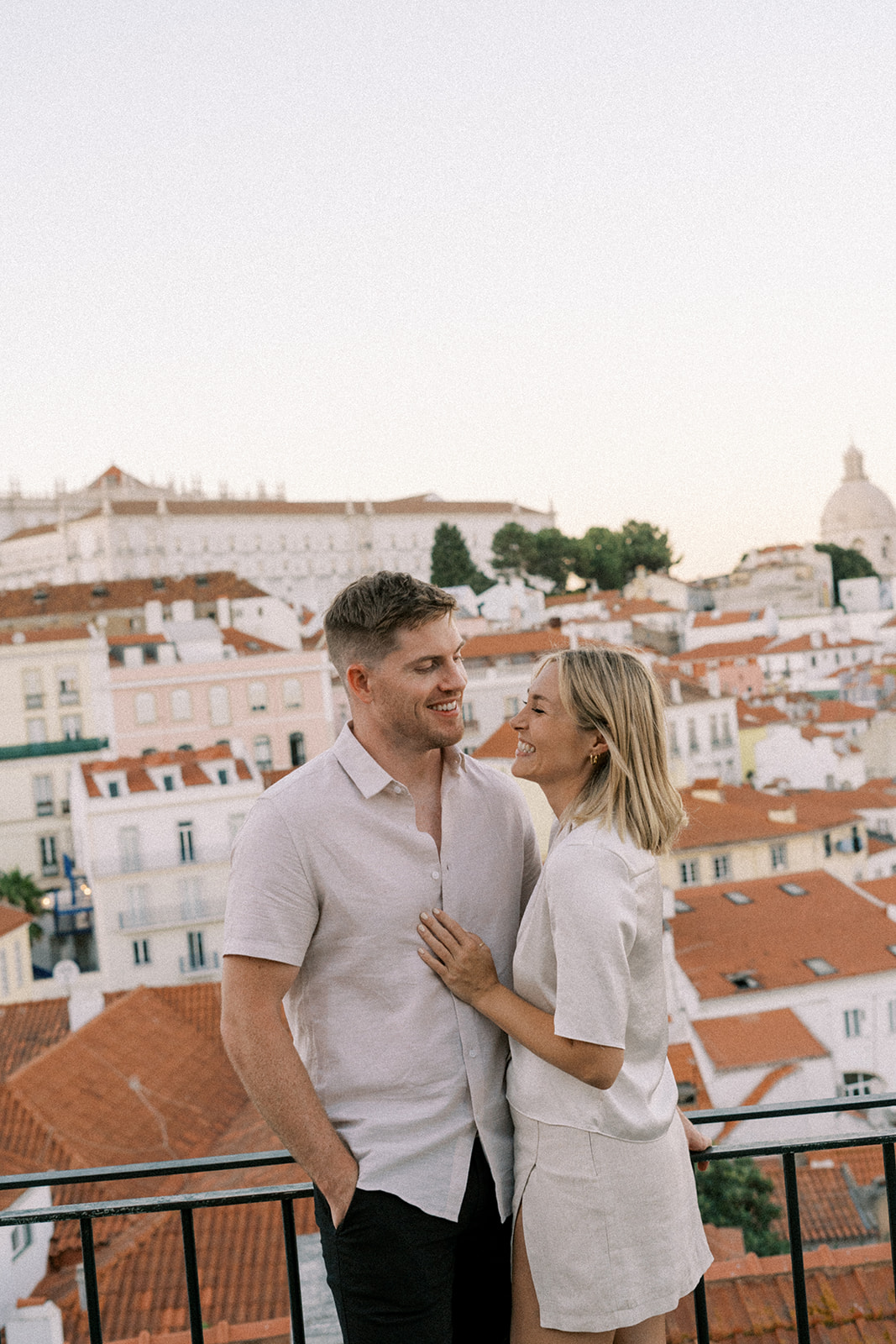 We finished at Miradouro das Portas do Sol, with an open view over the rooftops and a perfect sunset. A quiet ending, with soft light that transforms everything and leaves space for what matters most: their connection. At the very end, we crossed paths with the iconic Tram 28 — the perfect final touch, full of movement and unmistakably Lisbon.