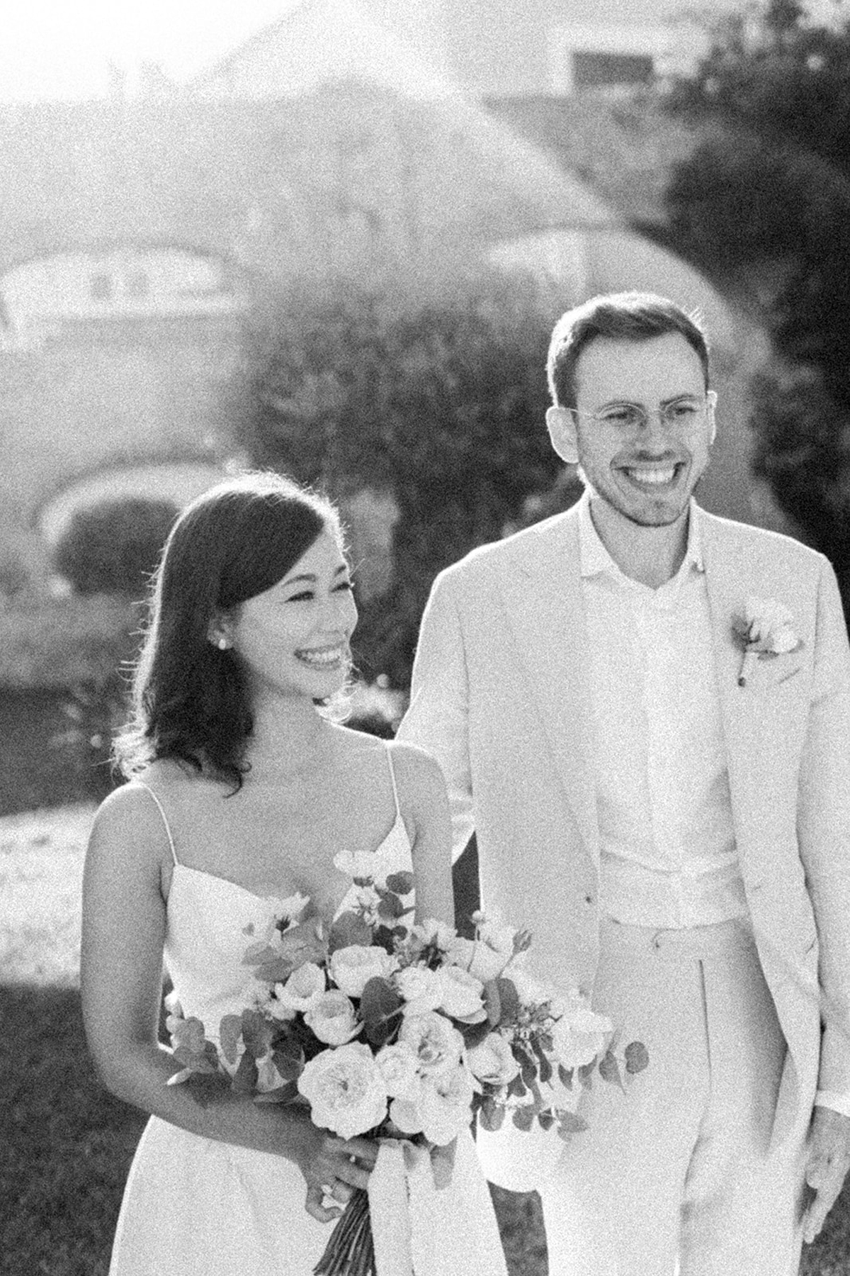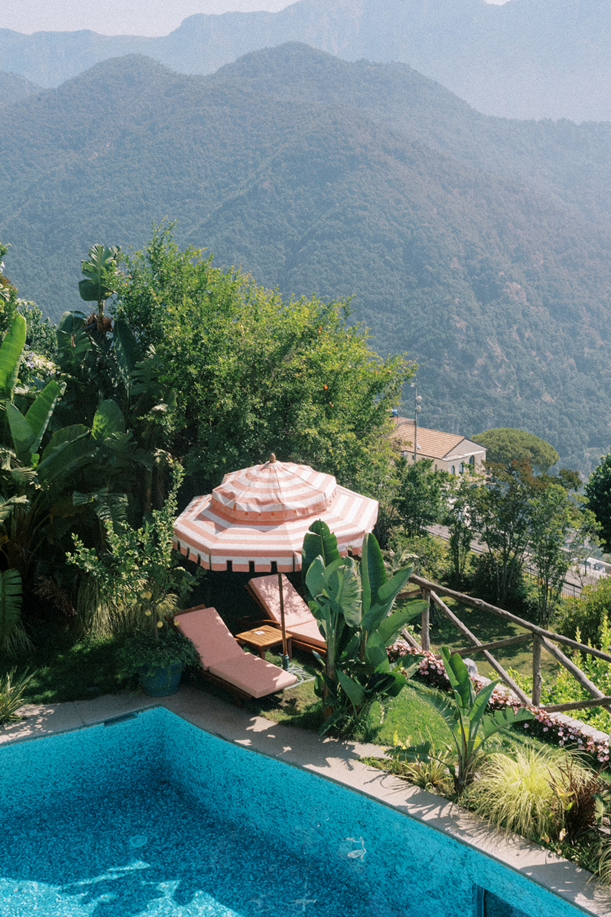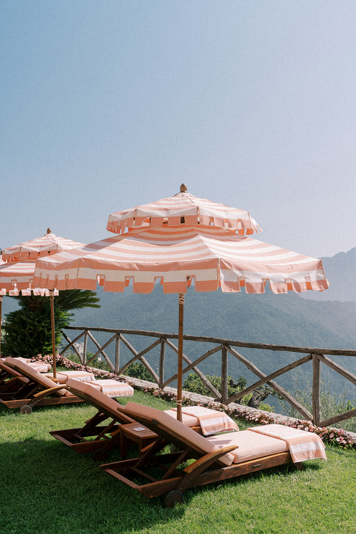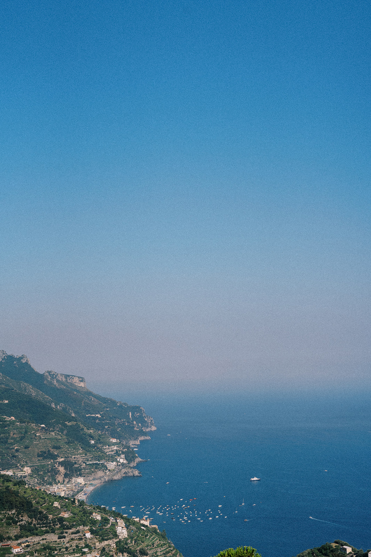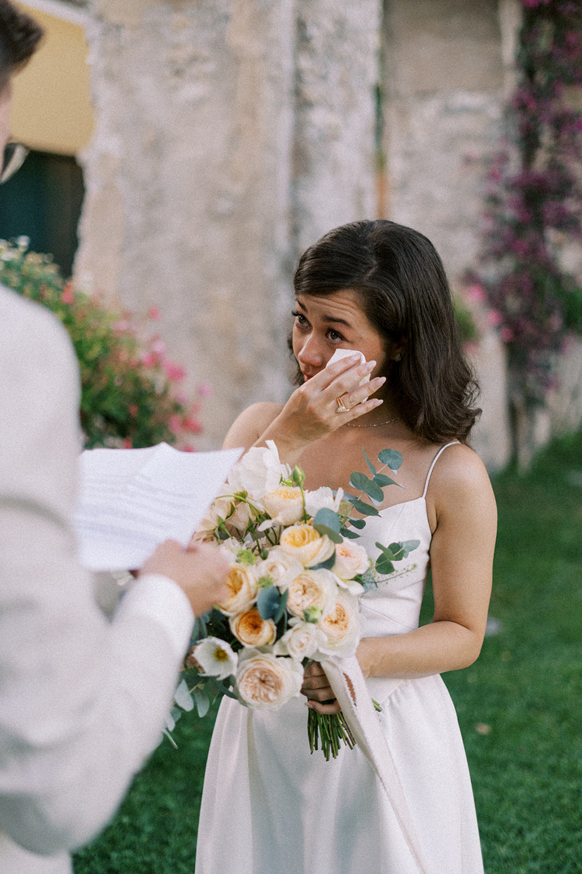 Começámos no elegante Palazzo Avino, onde a luz suave da tarde entrava pelas janelas e tudo parecia suspenso no tempo. No jardim dos Giardini Principessa di Piemonte, o casal trocou votos em silêncio, rodeado apenas pela brisa e pelo som distante do mar.