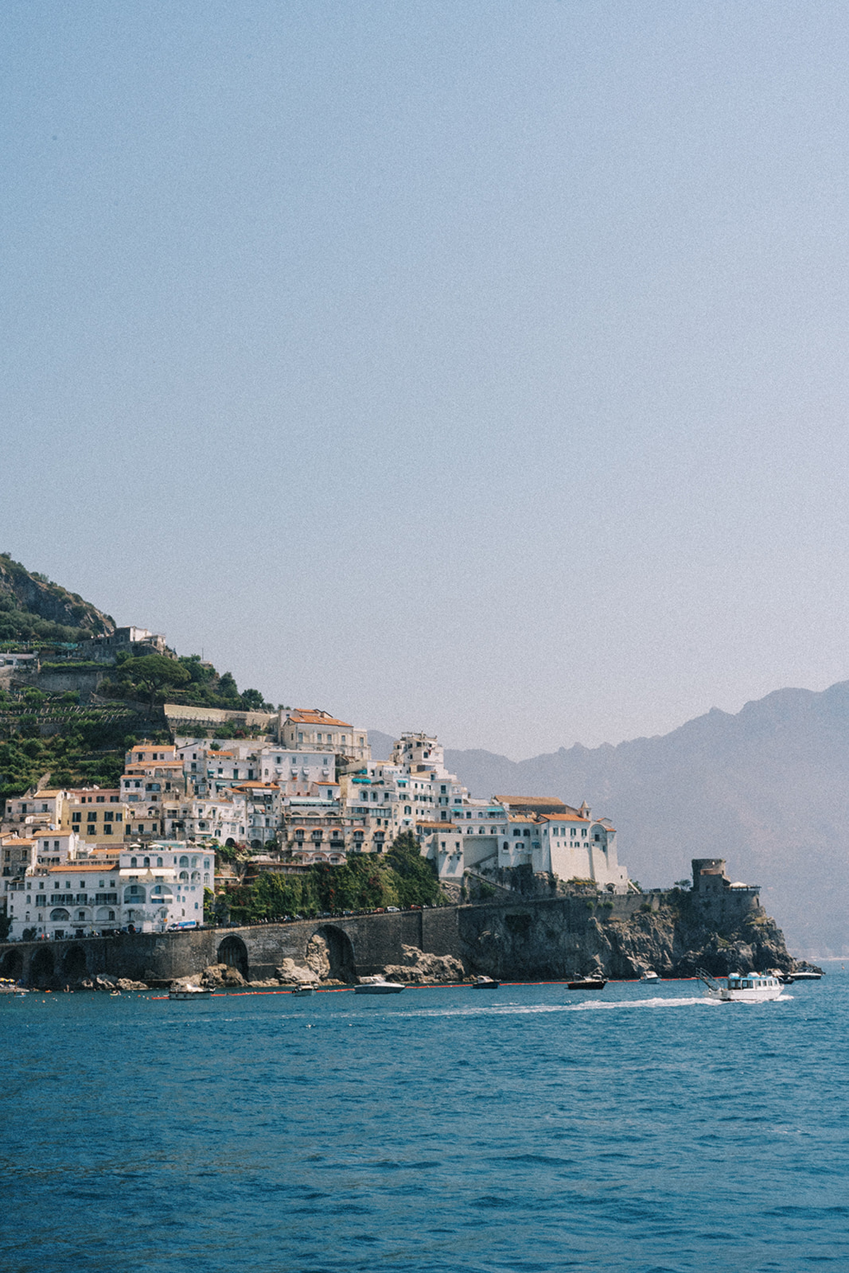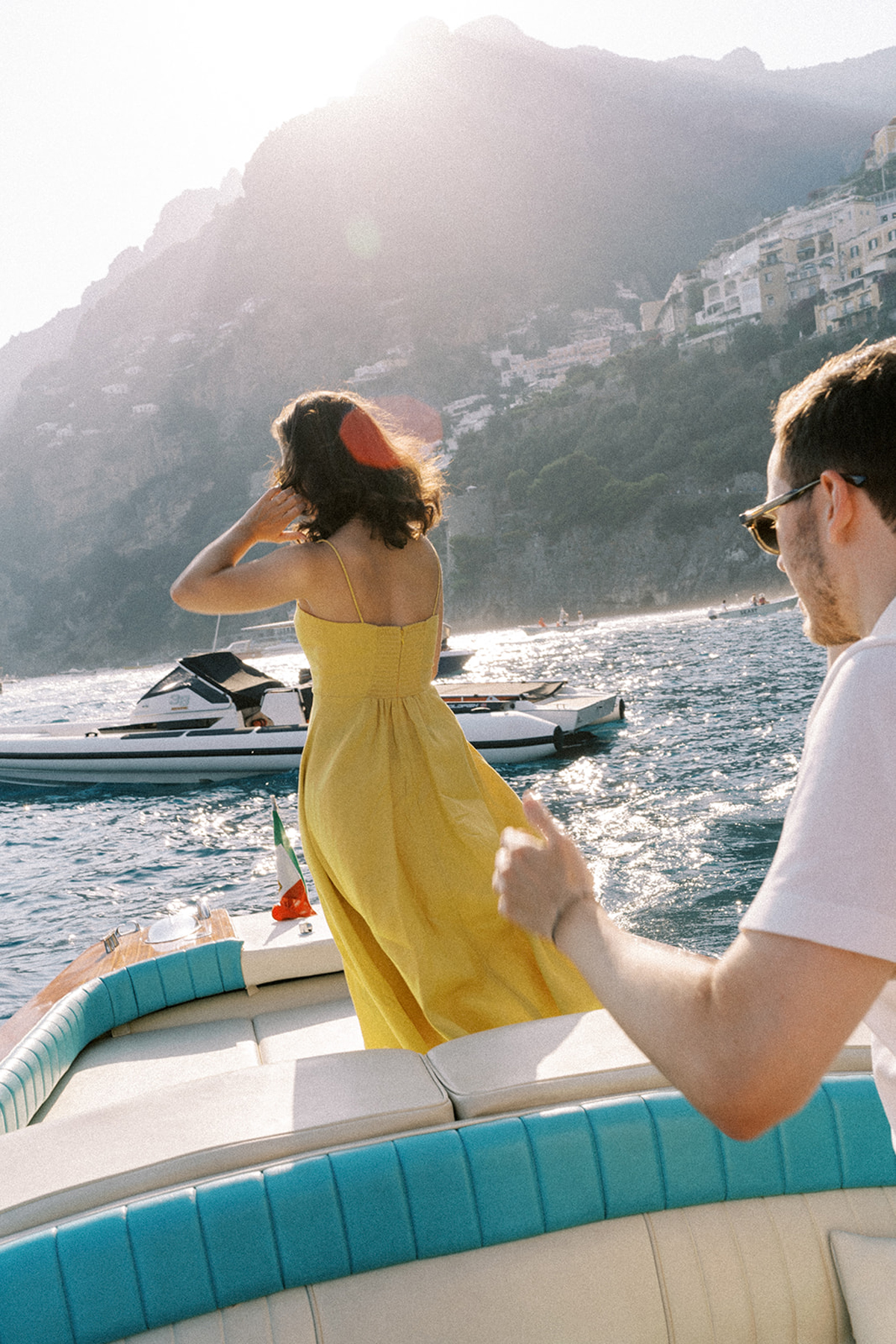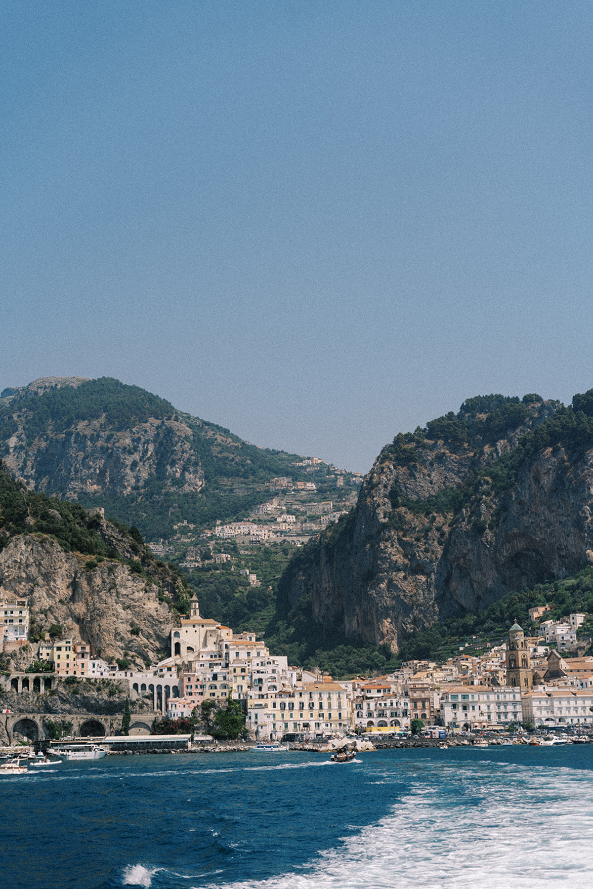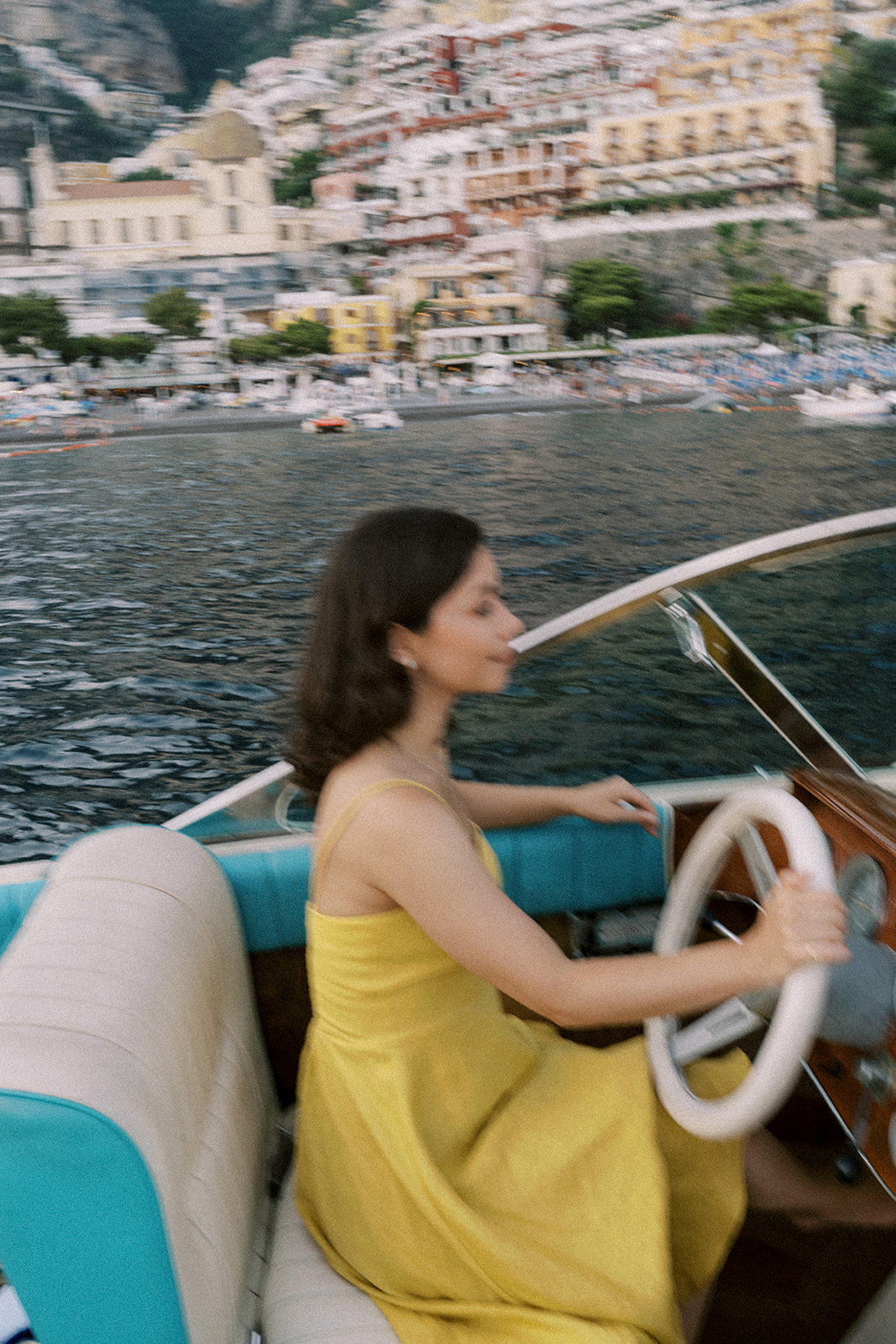 Depois, passeámos por Ravello, entre flores, varandas e vistas de cortar a respiração — e estivemos na minha altura favorita do dia, o lusco-fusco, na cinematográfica Villa Cimbrone, quando a luz se transforma e o mundo ganha tons dourados e suaves. No dia seguinte, Positano recebeu-nos com a sua energia dourada e o charme das casas em cascata. Terminámos o dia num barco, navegando ao pôr do sol, quando o céu e o mar se tornaram uma só cor.