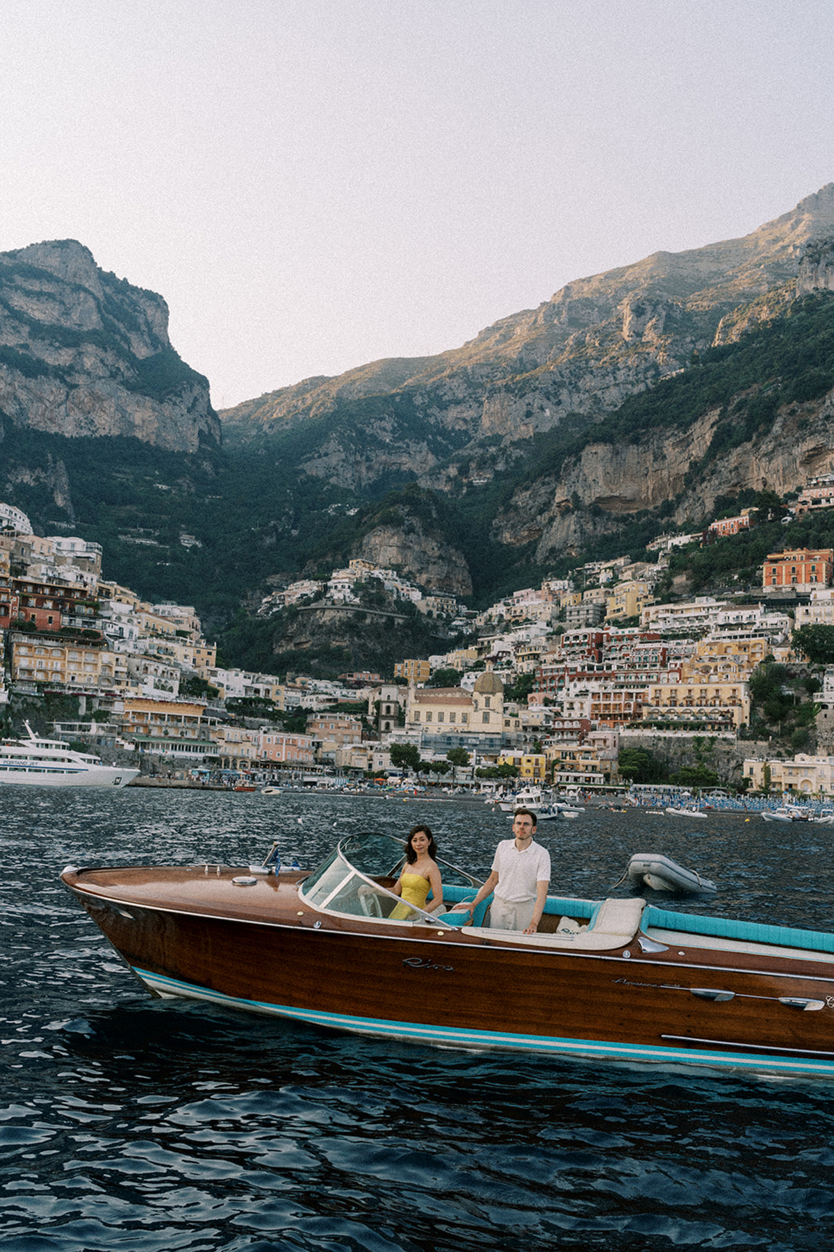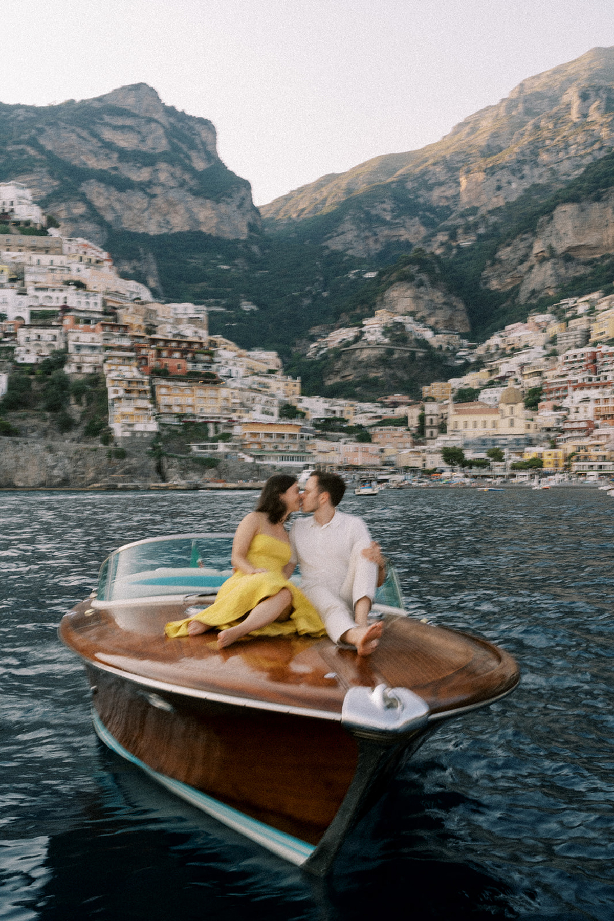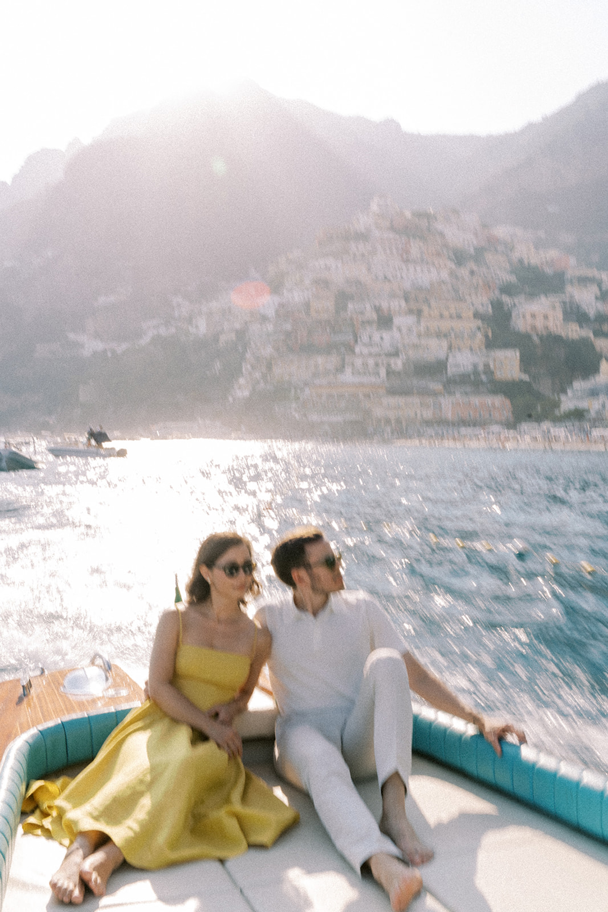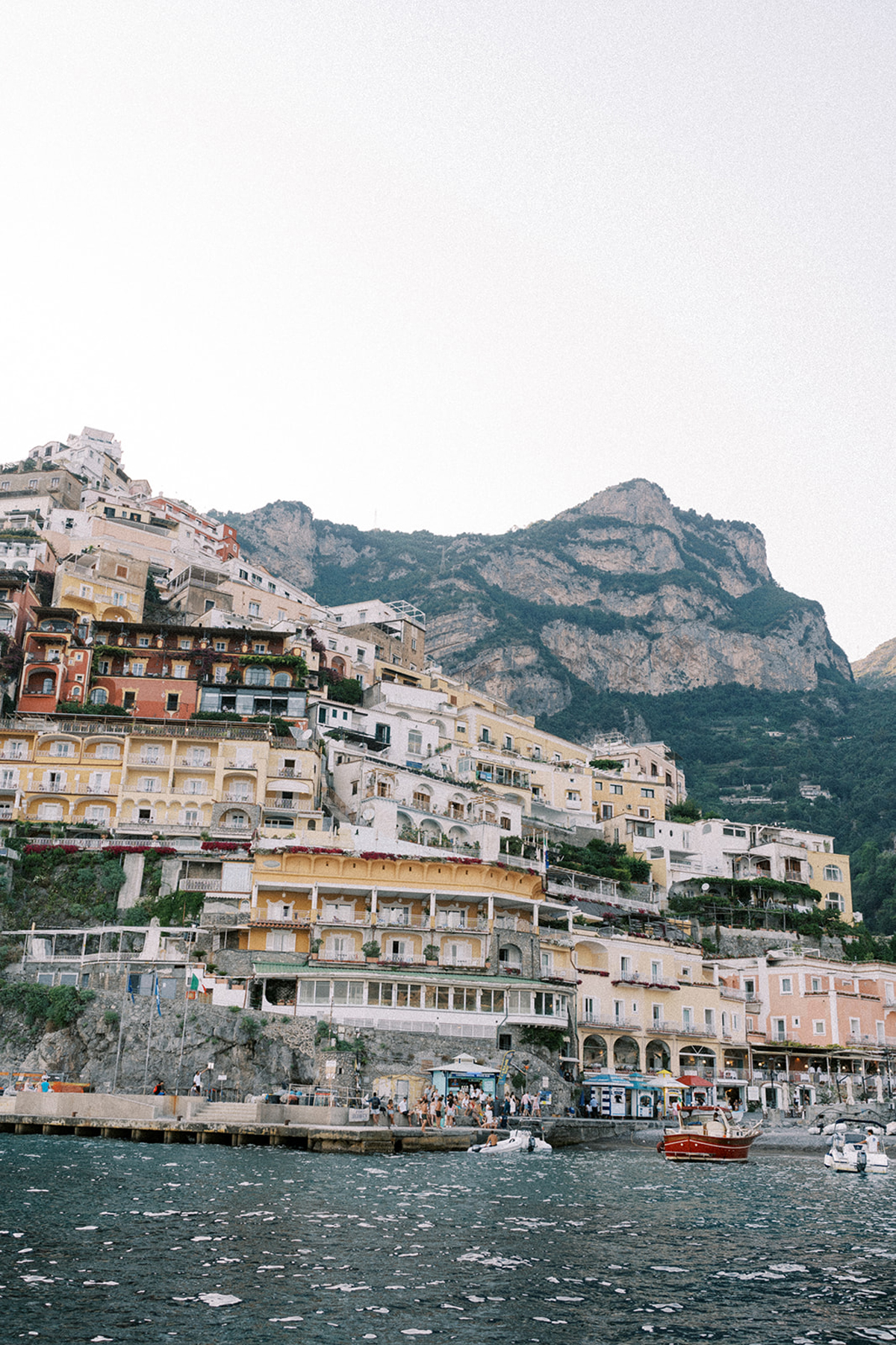 Depois, passeámos por Ravello, entre flores, varandas e vistas de cortar a respiração — e estivemos na minha altura favorita do dia, o lusco-fusco, na cinematográfica Villa Cimbrone, quando a luz se transforma e o mundo ganha tons dourados e suaves. No dia seguinte, Positano recebeu-nos com a sua energia dourada e o charme das casas em cascata. Terminámos o dia num barco, navegando ao pôr do sol, quando o céu e o mar se tornaram uma só cor.